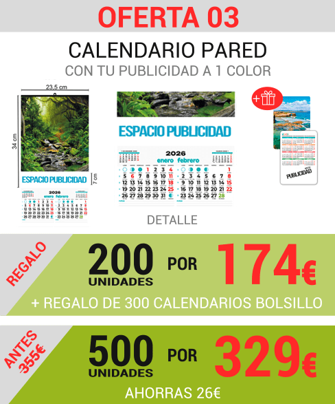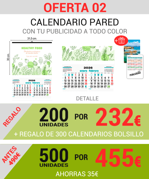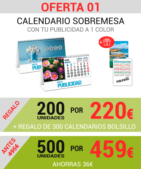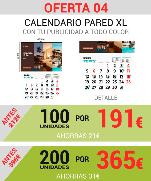 Por eso en 2026 regala Calendarios Promocionales Personalizados y Calendarios Baratos para Empresas. Tenemos más de 20 años de experiencia en la fabricación de calendarios promocionales, personalizados y almanaques personalizados. Por ello podemos fabricar el calendario publicitario que tenga en mente bien de pared o de sobremesa con varilla o encuadernado en wire-0.