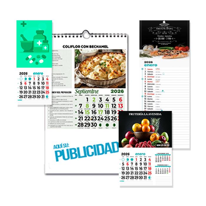Puesto que somos fabricantes tenemos una amplia gama de Calendarios Personalizados, Promocionales y Almanaques Personalizados Calendarios de pared, de sobremesa, de Bolsillo, Calendarios Trimestrales, de Cocina, Imantados y Personalizados con tu publicidad. También envarillamos y realizamos el grapado de los mismos.